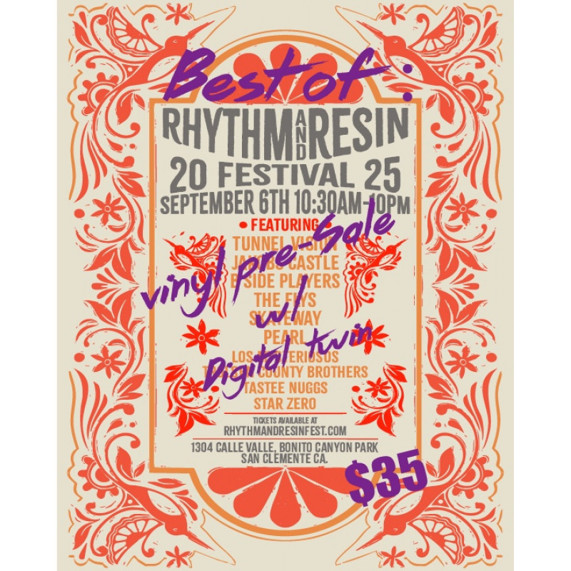 Pre-sale of the to be mastered and cut 12" virgin vinyl record with digital twin featuring the Best Live Performances during the festival. Purchase "Best of Rhythm & Resin Festival 2025" now and receive a signed poster included with your album delivery.